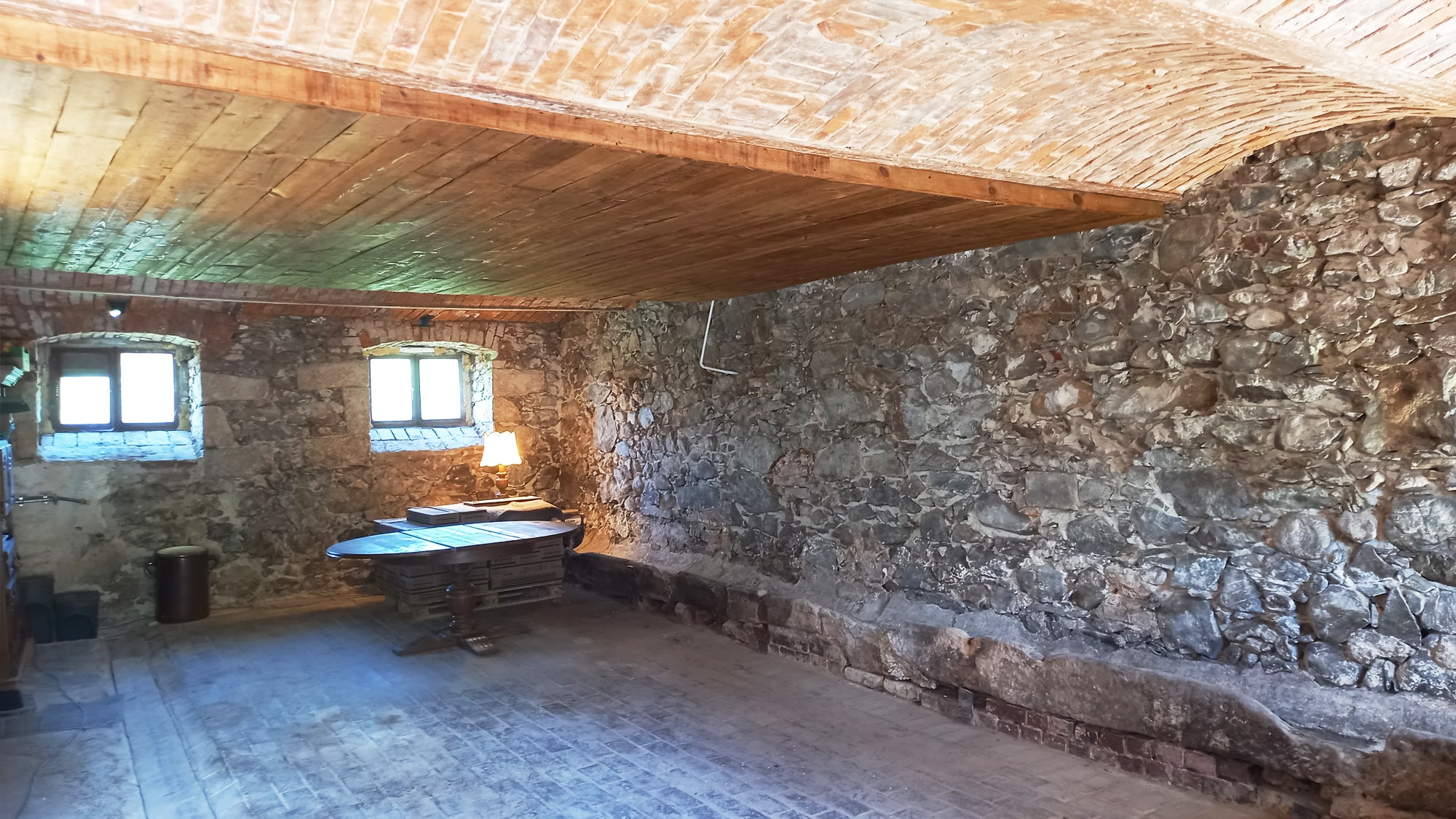 Piwnice w budynku głównym – to na razie potencjalne pomieszczenia do zaadoptowania w przyszłości. Na pewno wiadomo o nich że są także zbudowane z bazaltu, cegły i piaskowca, które to piękno samo w sobie już jest ich walorem.