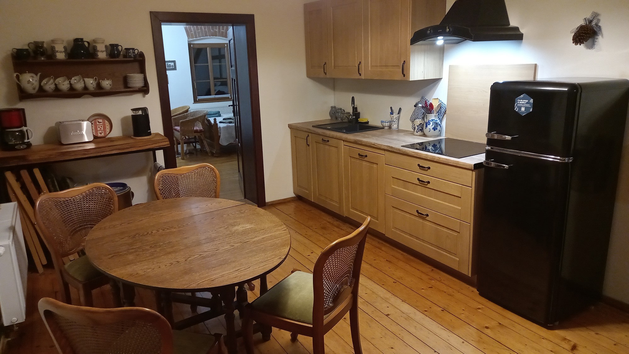 Ogólnodostępna kuchnia – jest to pomieszczenie znajdujące się na pierwszym piętrze pomiędzy pokojem Szachulcowym i Sielskim. Posiada nowoczesne wyposażenie kuchenne jak 4-palnikowa płyta indukcyjna, czajnik, toster, ekspres do kawy, zmywarka, lodówka, okap kuchenny, niezbędne garnki, talerze i sztućce oraz meble kuchenne do wygodnego przechowywania przywiezionych przez Was produktów spożywczych.