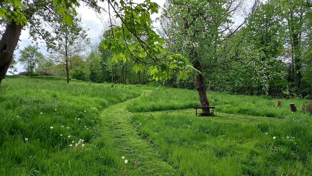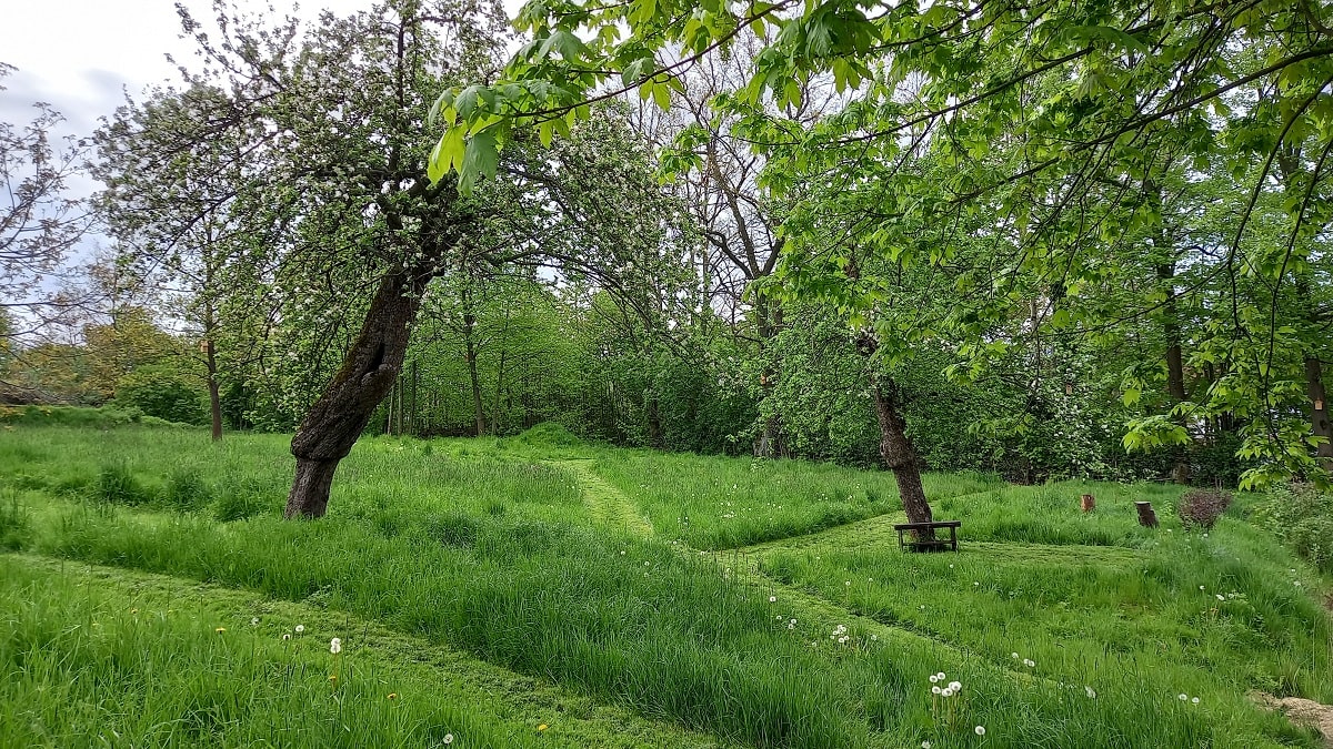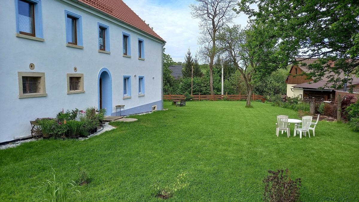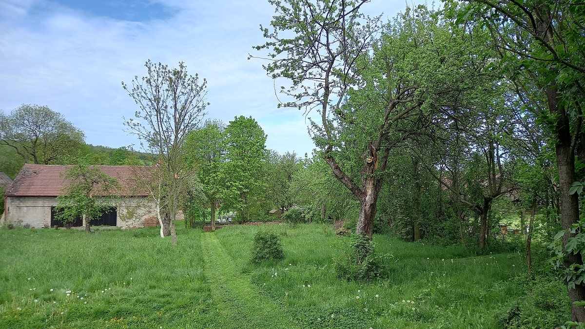 Ogród i stary sad – Biała Kalina położona jest na działce o powierzchni 5500 m2, znaleźć tutaj można część bardziej zadbaną w postaci sporego trawnika, domek zabawowy dla dzieci w cieniu starych czereśni, przestrzeń do posiedzenia pod drzewami lub też w pełnym słońcu, wydzielone miejsce na ognisko i biesiadowanie, oraz piękną Kalinę, pozwalającą cieszyć się swoim urokiem od wiosny do późnej jesieni. W drugiej części naszego ogrodu zobaczyć możecie obszar porośnięty naturalną roślinnością jak wysokie drzewa, krzewy, kwiaty oraz trawy. Znajdują się tam także jabłonie starych odmian jak złota reneta, antonówka czy też kosztele. Wszystko to w otoczeniu pięknej zieleni, gdzie usłyszeć możecie cudowny śpiew ptaków czy zaobserwować przelatującego nietoperza. A dodatkowo mamy wydzielone miejsce do nocnej obserwacji gwiazd, jako że jest to obszar o dużym zaciemnieniu i bez występowania bezpośredniego sztucznego światła.